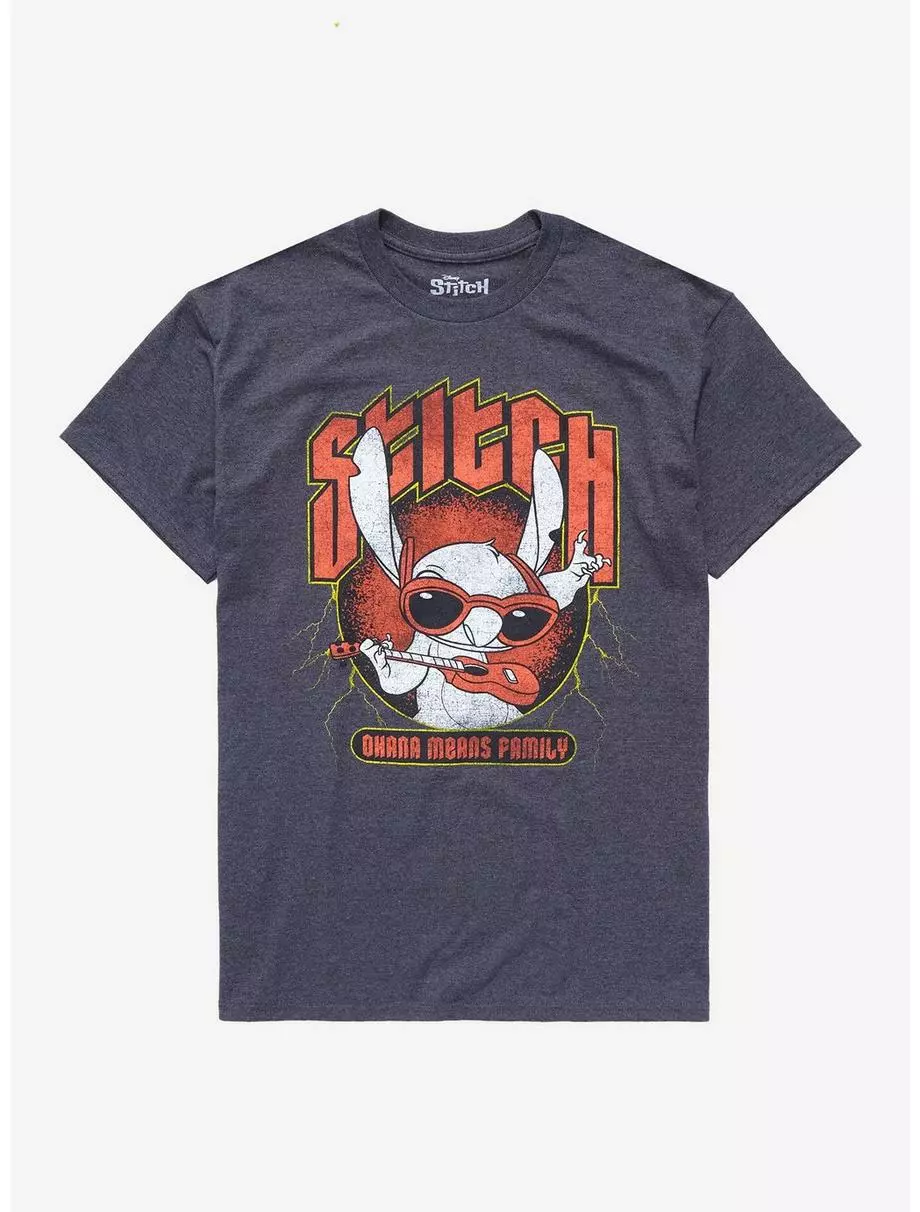We’ve got the perfect tee for you and your ohana just in time for your next family vacay! Add some mischief to your wardrobe with this Lilo & Stitch tee, featuring Stitch rockin’ out at the center with his name up top in a metal-inspired font, and “Ohana means family” below.