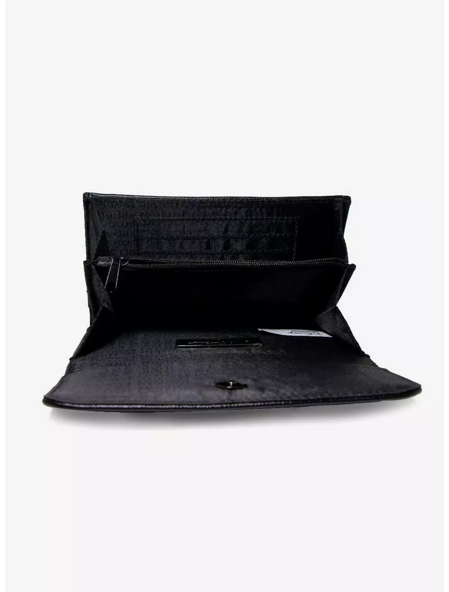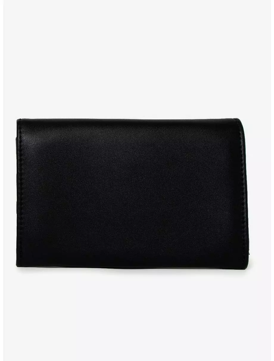 Stylish and sleek, this Minnie Mouse ears and bow fold over wallet is made from vegan leather. It measures 6.5 x 4.5 x 1.0 inches and features 2 Large Pockets, 3 card slots, and 1 coin zipper.