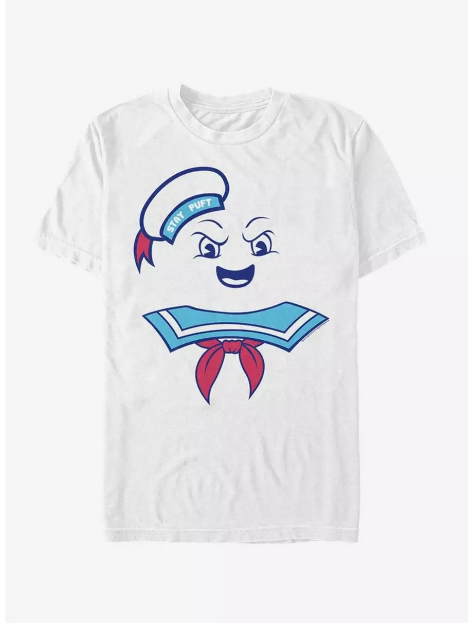 The Stay Puft Marshmallow Man looks like he’s about to destroy a city! Luckily, the cutest villain around is actually just stuck on the front of this white T-shirt.