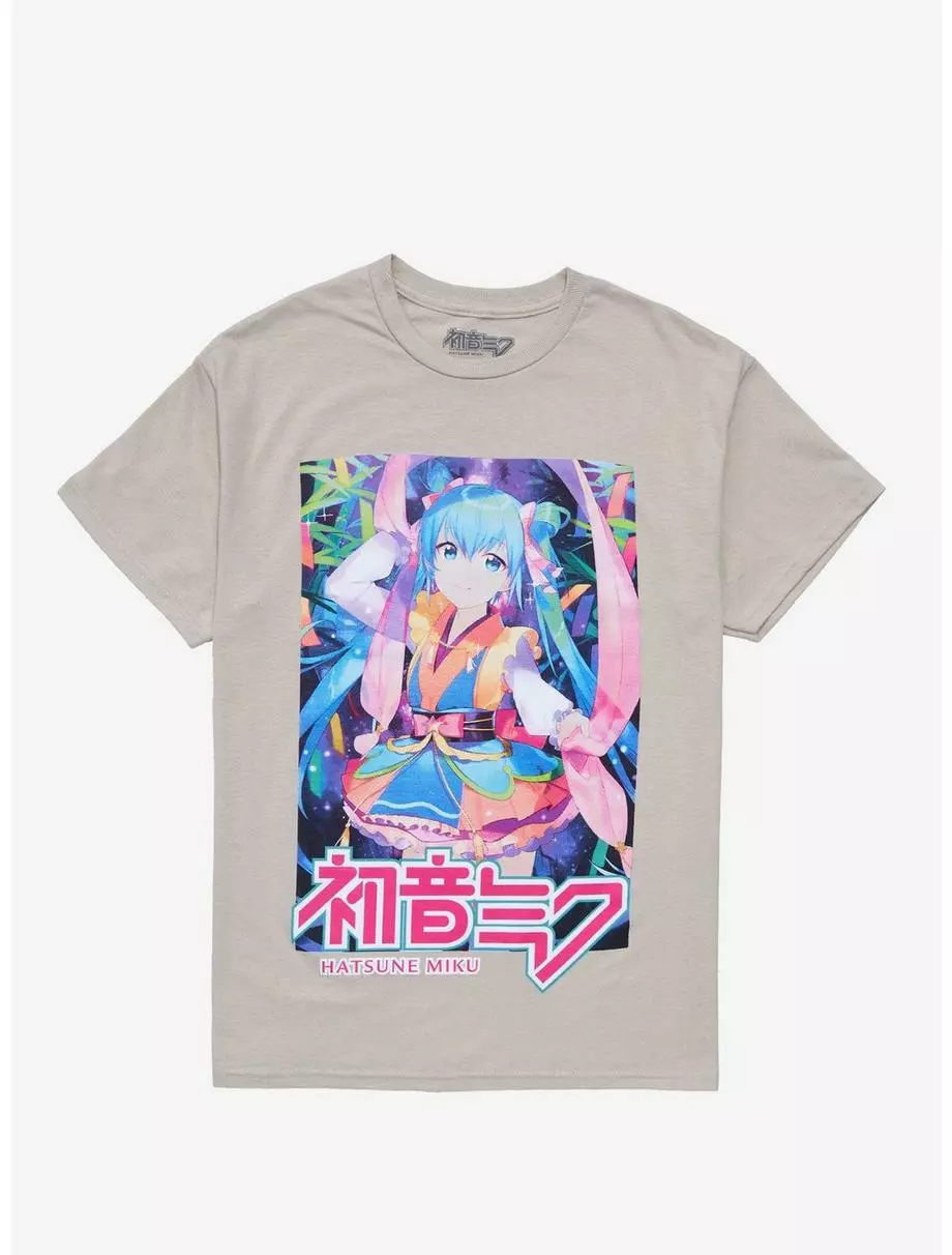 Get ready to sing your heart out, because we’ve got the perfect new tee to add to your wardrobe! Your favorite virtual singer is featured on this tee, featuring a large print of Hatsune Miku in a vibrant outfit front and center.