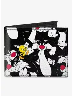 Looney Tunes Sylvester and Tweety Poses Scattered Canvas Bifold Wallet