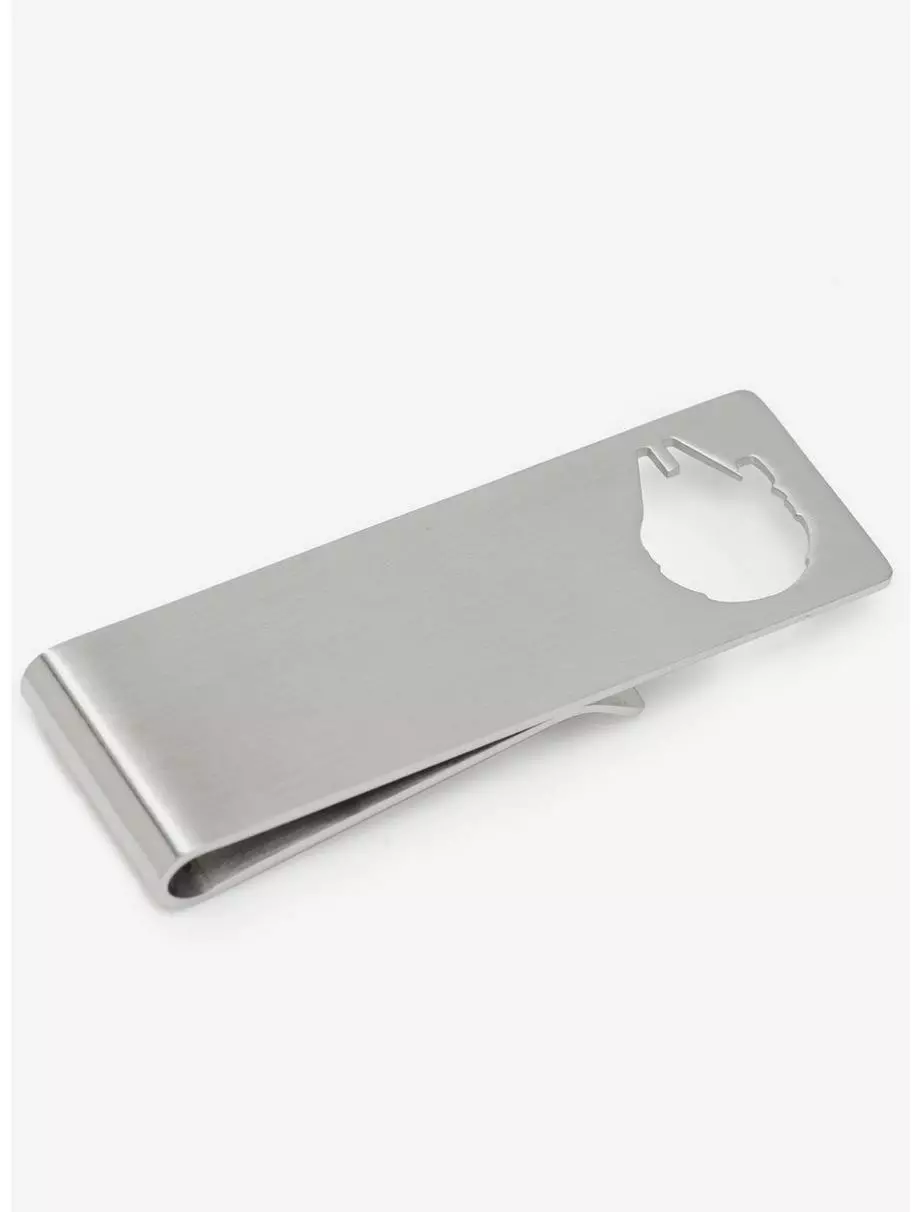 Even smugglers need a place to keep their money safe, so why not use a money clip featuring the galaxy’s most well-known smuggling ship? This brushed-metal finish clip features a cutout of the Millennium Falcon on one side and the Star Wars logo on the reverse, making it the ideal gift for the Star Wars fan who has everything. Officially licensed by Lucasfilm LTD.