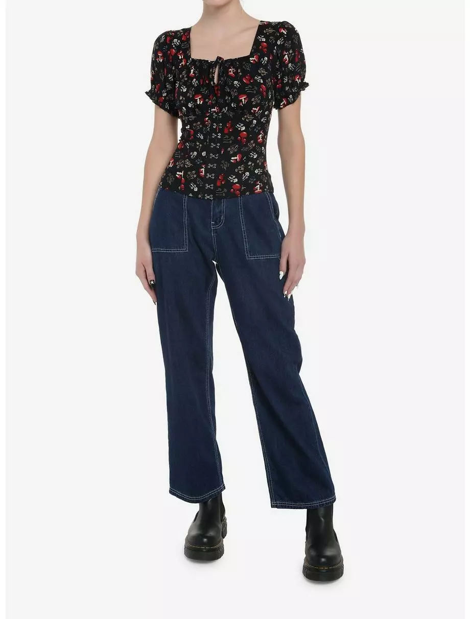 Mushrooms Allover Print Puff Sleeve Girls Top