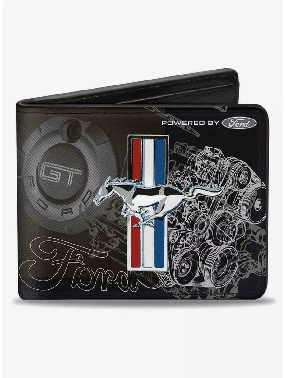 Mustang Tri Bar Stripe Gt Motor Blueprint Bifold Wallet