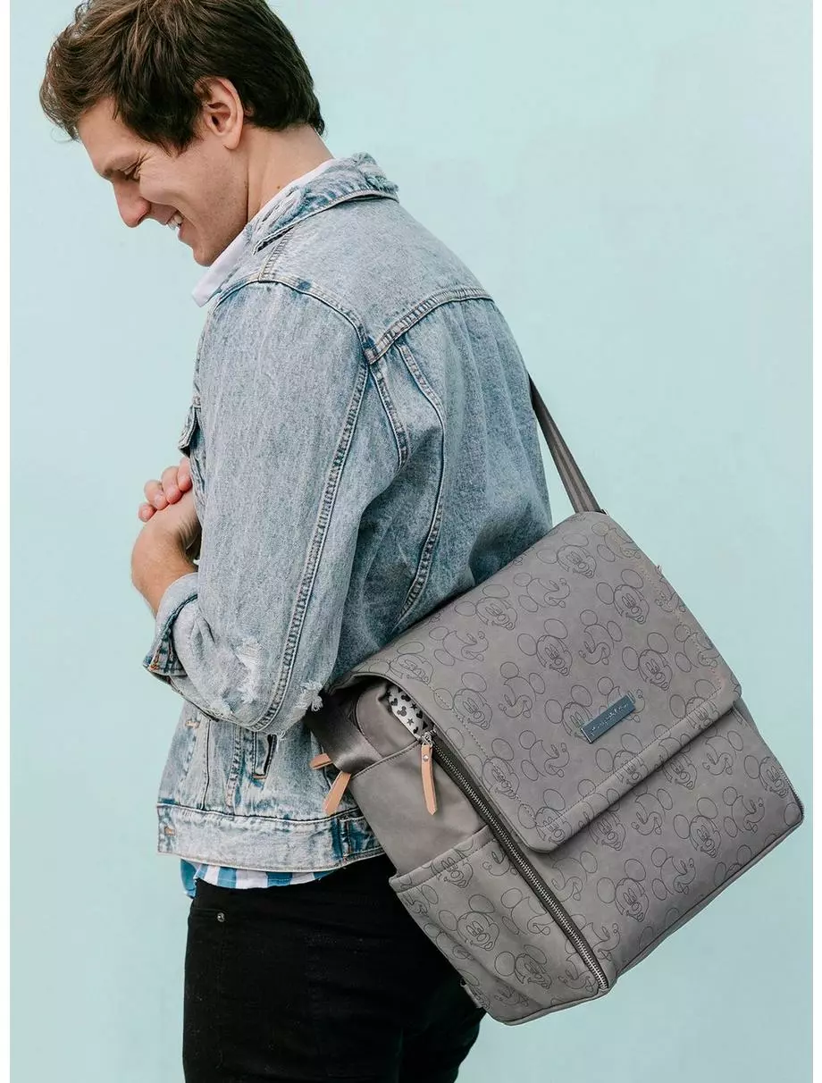 Celebrate the magic of Disney’s Mickey Mouse in the latest collaboration with Disney. This Boxy Backpack is outfitted in a cheerful microprint that spells out love for Mickey Mouse fans, and perfectly coordinates with the other bags and accessories in the Love Mickey Mouse collection. With every detail at the ready, the spacious and well-appointed Boxy Backpack cleverly features a built-in changing station, lots of organizational interior and exterior pockets, and offers multiple carrying options for maximum versatility. Includes a removable zippered pouch in coordinating microprint. Spacious interior with 5 pockets and a key clip, 2 exterior bottle pockets, magnetic front flap closure, plus snaps for added security.