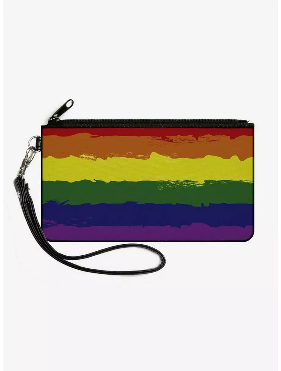 Rainbow Stripe Painted Canvas Zip Clutch Wallet