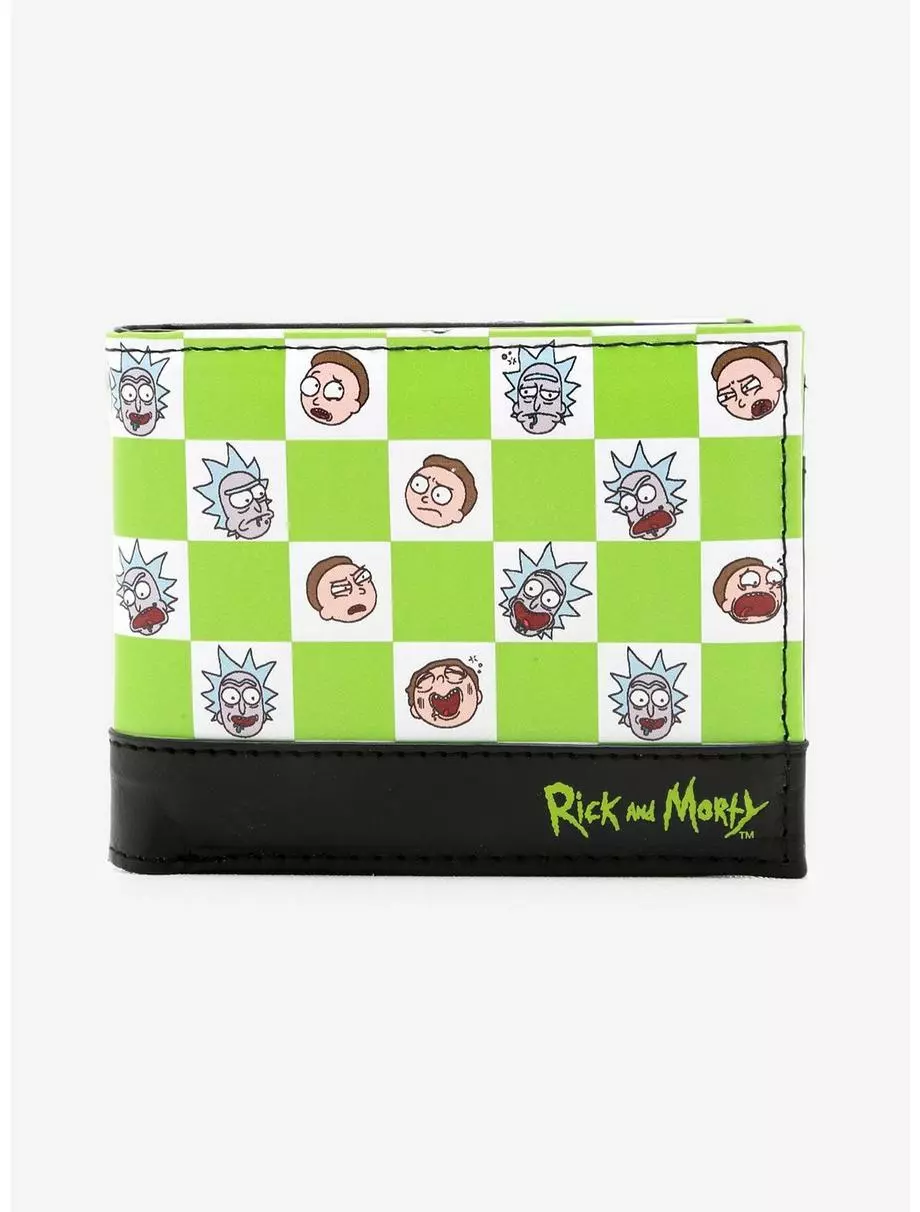 When you’re traveling between dimensions, you need to keep your schmeckles close so you don’t lose them in transit. This bi-fold wallet features Rick and Morty heads on this green & white checkered print. Includes 3 card slots, clear ID display and one billfold.