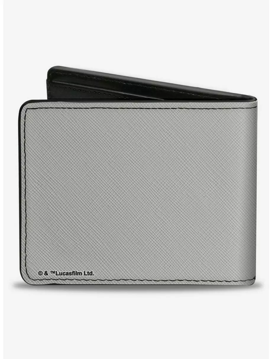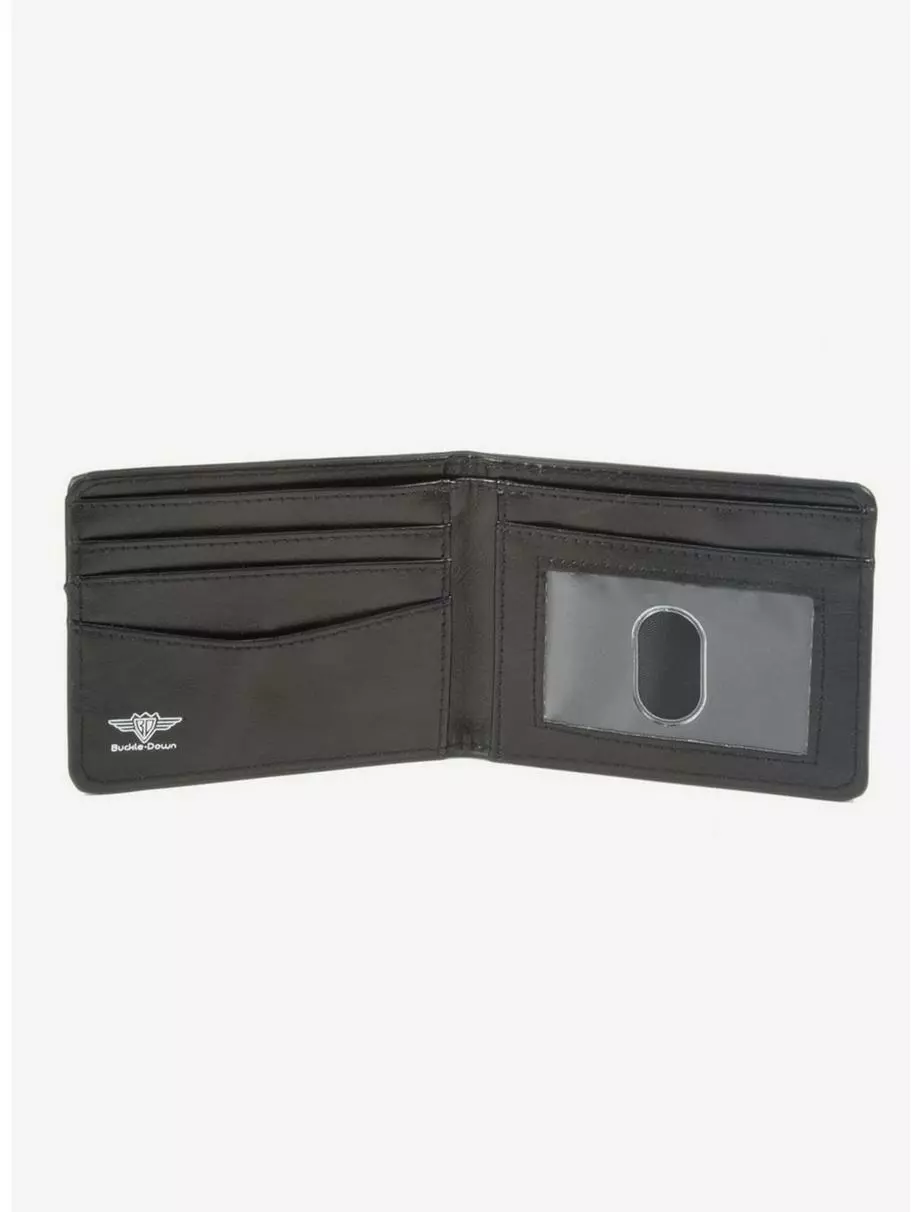 This awesome men’s bi-fold wallet is made from premium vegan leather. It measures 4 x 3.5 x 0.5″, and features the standard billfold, 5 card slots, and windowed ID holder. The logos are applied using advanced printing technologies, so the wallet will still look good after years of hard use. This product is made by Buckle-Down, Inc. and Officially Licensed by Lucasfilm Ltd.