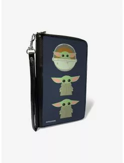 Star Wars The Child 3 Chibi Poses Gray Zip Around Rectangle Wallet