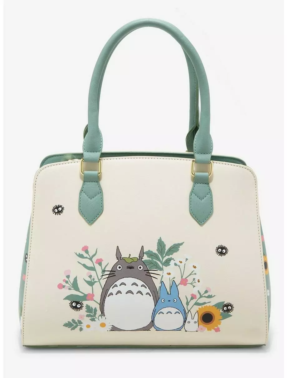 Pack all of the essentials you need for a day in the forest! This My Neighbor Totoro satchel bag features all of your favorite forest spirits on one side, plus flowers and Soot Sprites all around them. The other side has more Soot Sprites resting among flowers. Comes with an interior zipper pocket, interior drop pocket and an adjustable & removable crossbody strap.