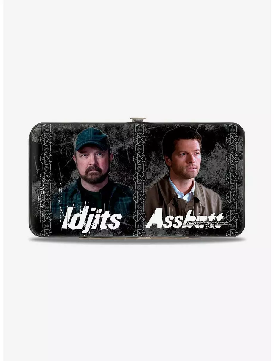 Stylish and sleek, this hinged wallet is made from vegan leather and stainless steel. It measures 7 x 4 x 0.75 inches, with 2 billfolds, 4 card slots, and a windowed ID holder.