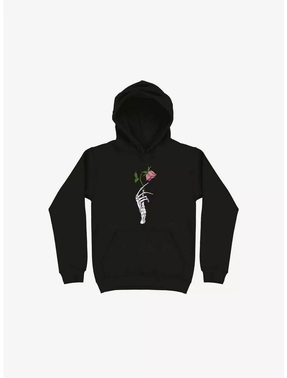 You should probably accept this rose. Our black pullover hoodie features a beautiful bloom held by one boney hand.