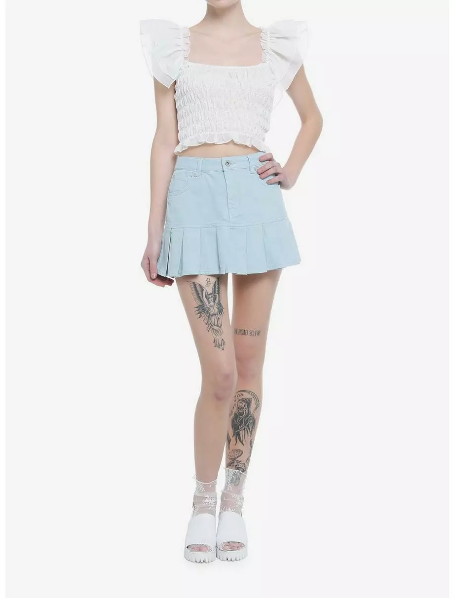 Keep your wardrobe flirty and fun with this smocked crop top! Look light as a feather with the flutter sleeves, plus white smocking all around the body and a square neckline.